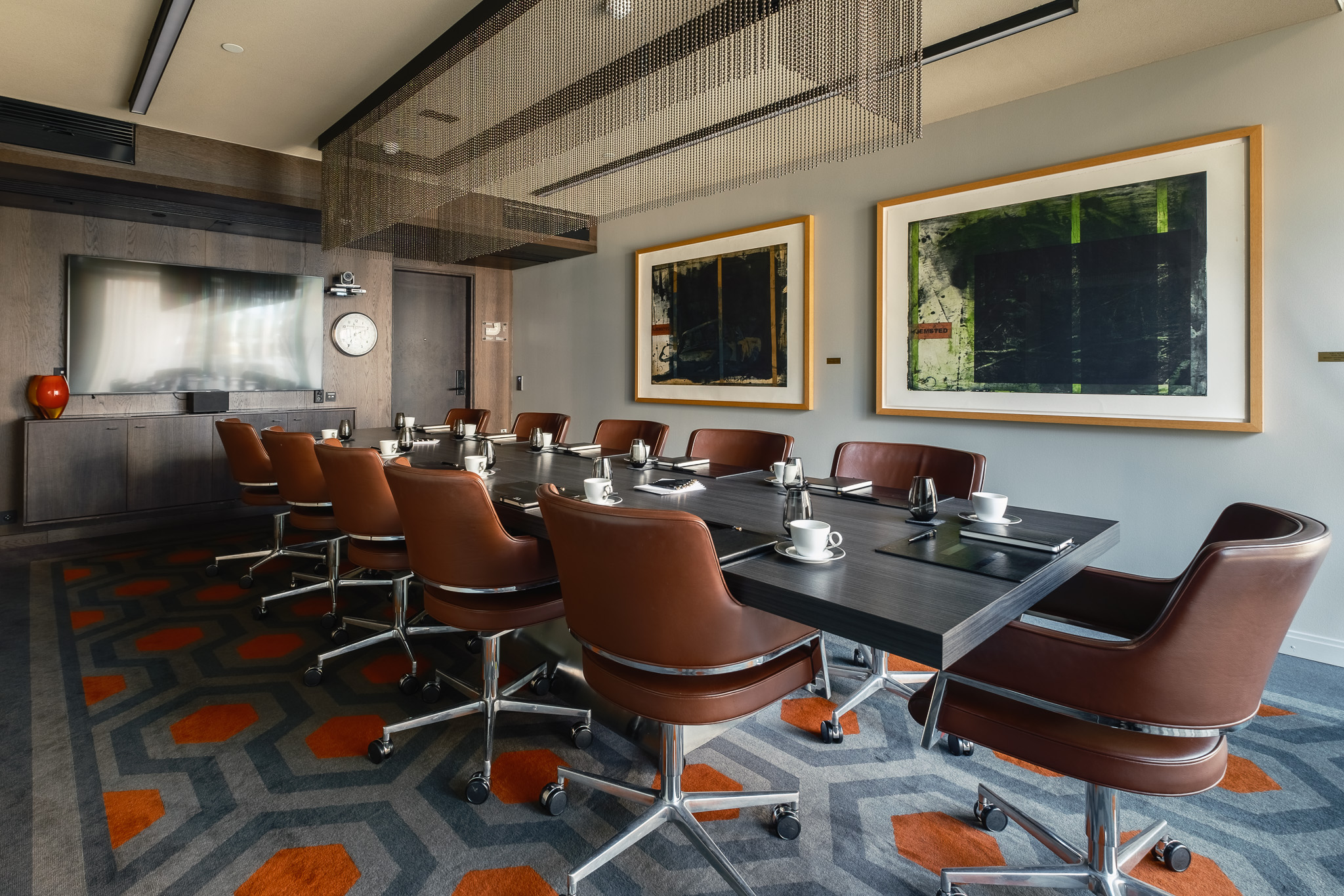Spacious meeting room with a personal and intimate atmosphere, cinema screening capabilities, and full technical facilities.